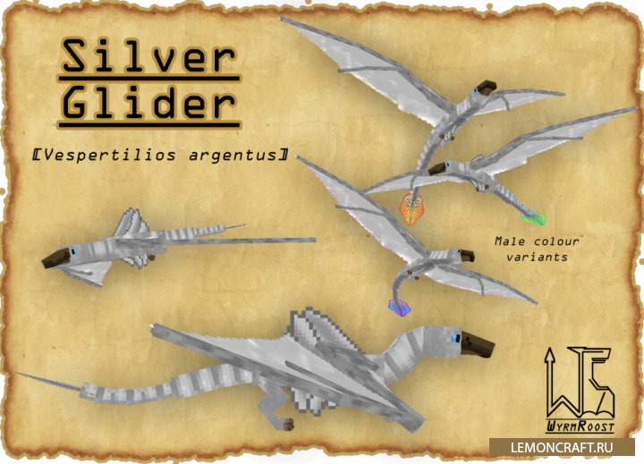 Мод на драконов Wyrmroost разнообразит мир майнкрафта древними существами, а именно драконами. Автор мода только начал разработку данной модификации и планирует развивать мод в дальнейшем. В игре появятся новые драконы и несколько предметов, которые помогут вам выжить в этой интересной игре.
